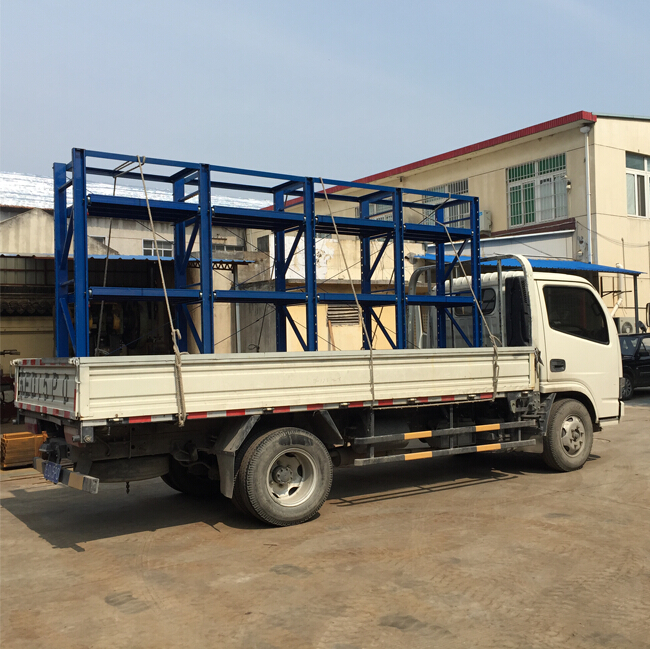 正常的模具架發貨都是配件散裝好發貨,但是江蘇這個客戶,因為離我們這邊距離有點遠,怕到時候拉回去他們那邊安裝麻煩。已經是第二次來我們廠里拉整套模具架了。