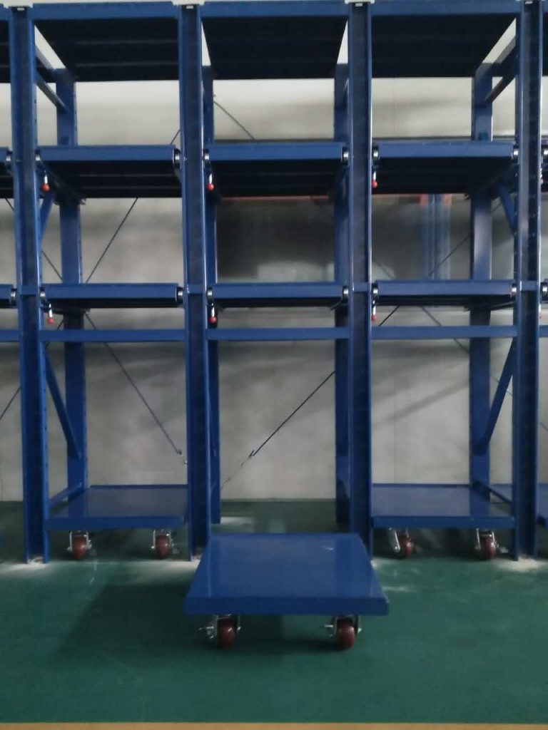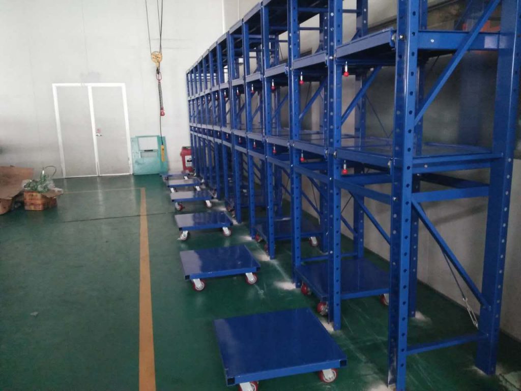 有一位客人找我們定制了一單與眾不同的模具架,底層不選擇使用半抽層板,而是選用小車的形式的模具架。